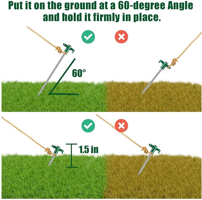 - 【Fixed】 The wooden stake is inserted in the ground at a 60 degree Angle, which can resist the strong wind in grass, soil and rock soil. It is a professional tool for fixing tents, canopies and tarps.