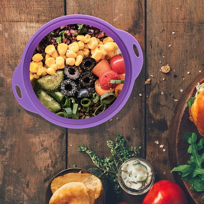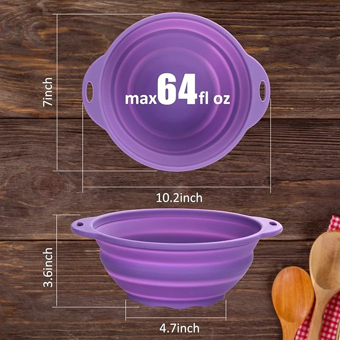 Collapsible SiliconelSalad Bowl 64oz Camping Bowl Outdoor Hiking Travel Durable Bowl for Storage and Mixing Food-Grade Silicone Food Storage Container 1 Pack (Purple)