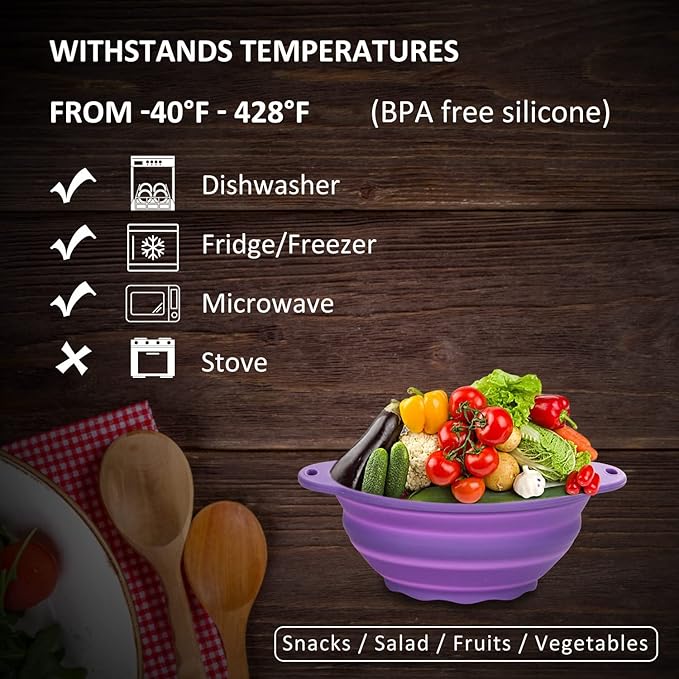 - Multifunctional: This silicone collapsible bowl is a universal type that can be used to put fruit; mix salad; and also for different kinds of outdoor activities, such as camping, hiking, cycling, picnics, etc