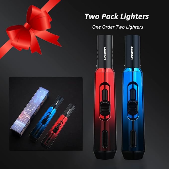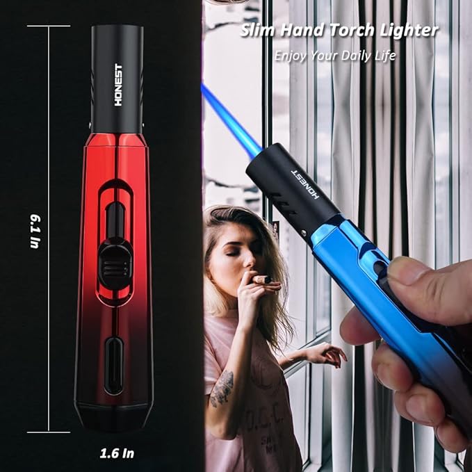- Slim, lightweight design feels good and easy to put in your pocket. The refillable blow torch lighter packed in an exquisite gift box and is a great choice for Birthday, Father's Day, etc.