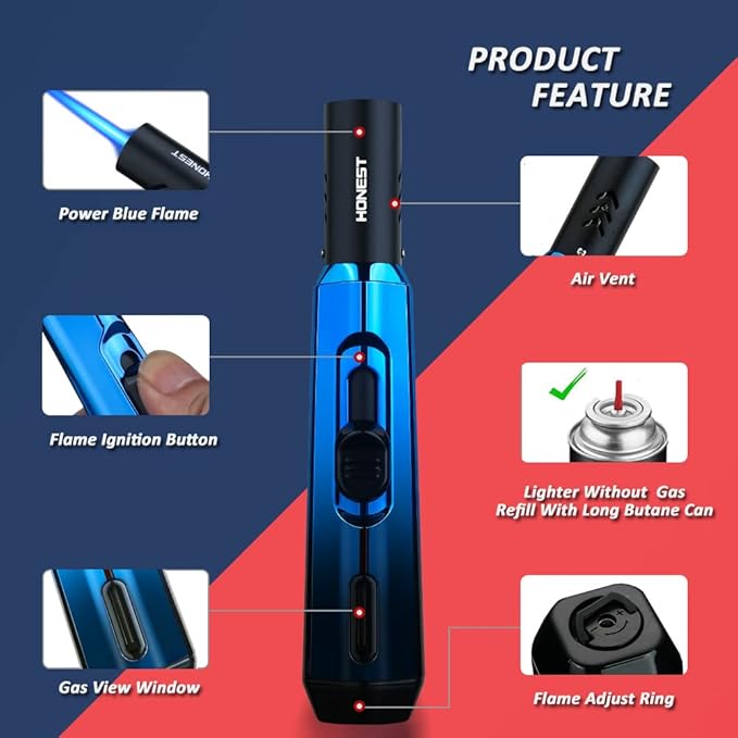 - The powerful torch jet flames emerge with a simple squeeze, also easily handle any breeze.