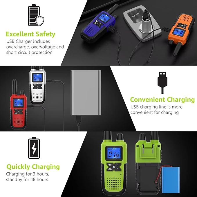 - 【Complete Set for Instant Use】 : Unbox to find everything you need: rugged walkie talkies for all ages, original earpiece and mic sets for private chats, original USB charger for rapid charging, Y cable for simultaneous charging, high-capacity battery for extended communication time, belt clip and adjustable lanyards for ease of carry. Your one-stop communication solution is here, whether for work, play, or anything in between
