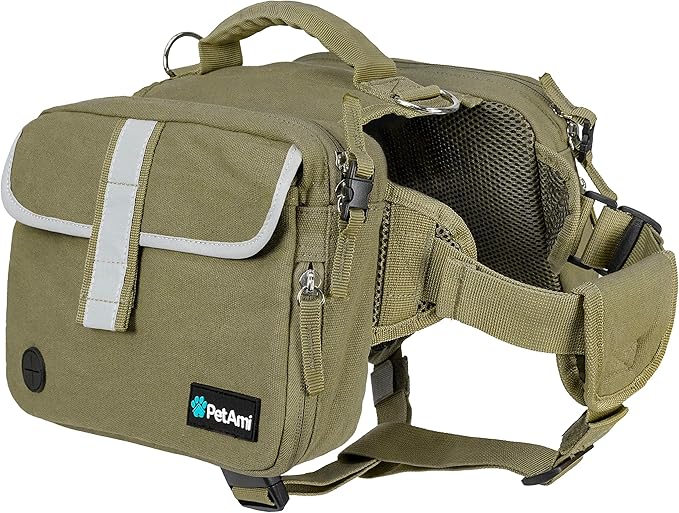 PetAmi Dog Backpack for Medium Large Dogs, Dog Saddle Bag For Dogs to Wear, Tactical Harness Saddlebag with Reflective Safety Side Pockets for Hiking Camping Vest Dog Pack Travel (Olive Green, Medium)