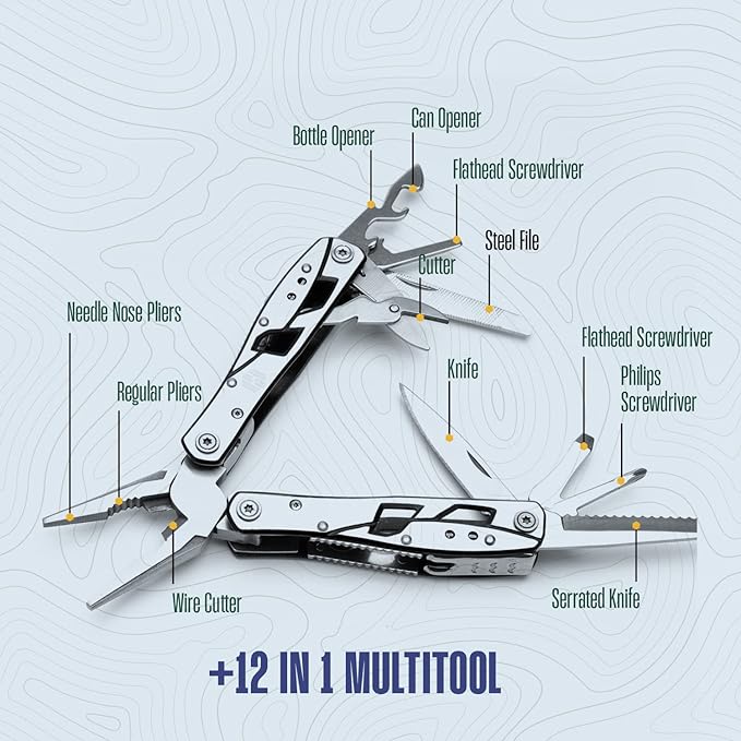Multitool Plier - 12 In 1 Stainless Steel Pocket Multi Tool With Durable Sheath For Camping, Survival Gear - Safety Locking Camping Accessories With Cutter, Bottle Opener, Screwdriver by Hayvenhurst
