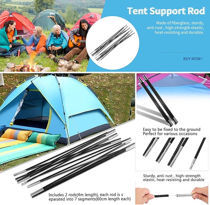 - 【Compact Structure】Multi-Lice folded tent poles, including 2 poles (3.96m long), and each pole can be divided into 7 fragments (60cm length for each pole). This is a multi-part foldable tent rod, compact structure, easy to carry and store