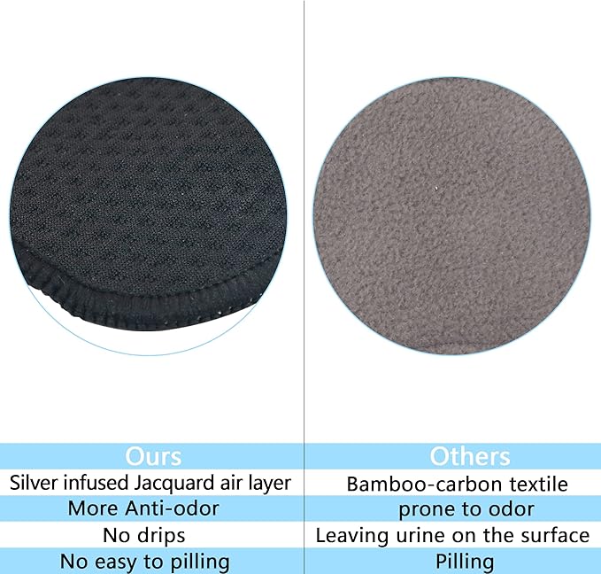 - [Great Absorbency&Quickly Dry ]:Unlike other products with bamboo charcoal fiber,our pee cloth will quickly absorb urine instead of just leaving it on the surface,and possess nice gas permeability(Dry in 2-3 hours at a ventilated and sunny place after washing it).