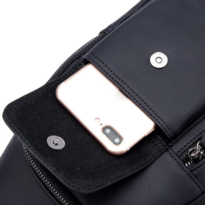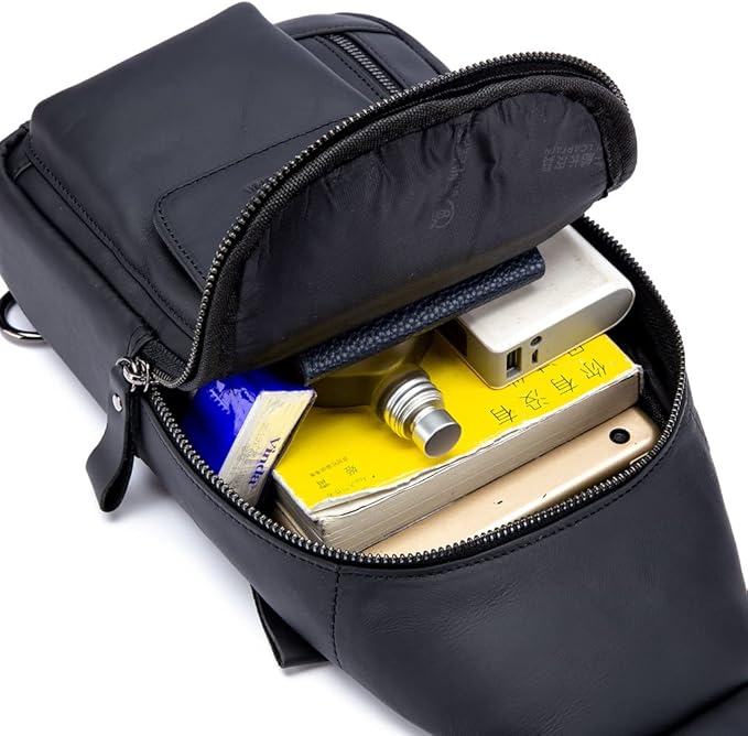 KPYWZER Leather Sling Bag Hiking Daypack for Men Women Outdoor Travel Camping Fishing Crossbody Shoulder Chest Pack Backpack Daypack Black