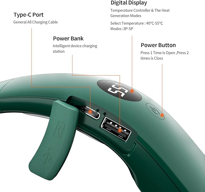 - 10,000mAh High Capacity Neck Warmer: A sleek, exquisite neck warmer with retro colors - Newest fashion Goods for winter 2022.10000mAh high capacity can provide continuous heating for 15 hours, heating in 4 seconds and dual-sided warming your body.