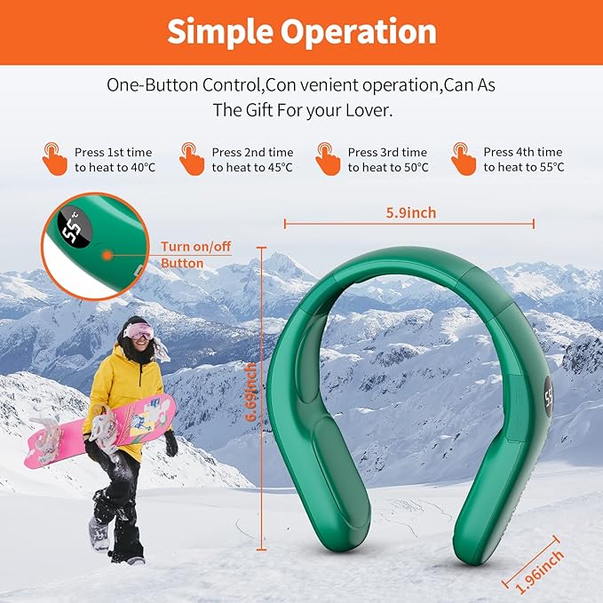 - Intelligent Heating Equipment: have handy temperature controls button and 3 temperature levels to keep your neck warm in winters. Don't let the thought of cold fingertips keep you from your favorite outdoor activity this winter season.