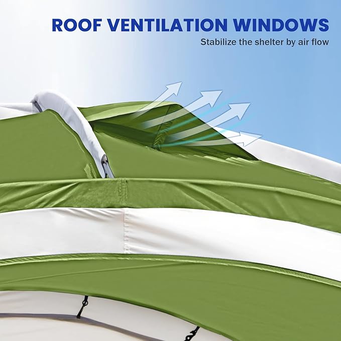 Beach Tent 12 X 12ft Large UPF50+ Pop Up Canopy with 2-Pcs Side Wall, Sun Shelter Rainproof, Waterproof for Camping Trips, Backyard Fun, Fishing, Parties, Or Picnics(Green)
