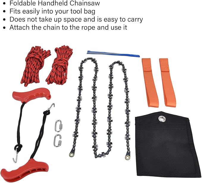 - ¡¾Foldable Handheld Chainsaw¡¿Foldable handheld chainsaw, can easily fit into your tool bag, does not take up space, easy to carry, attach the chain to the rope and use it. ical knife chain hand chain saw garden outdoor logging high