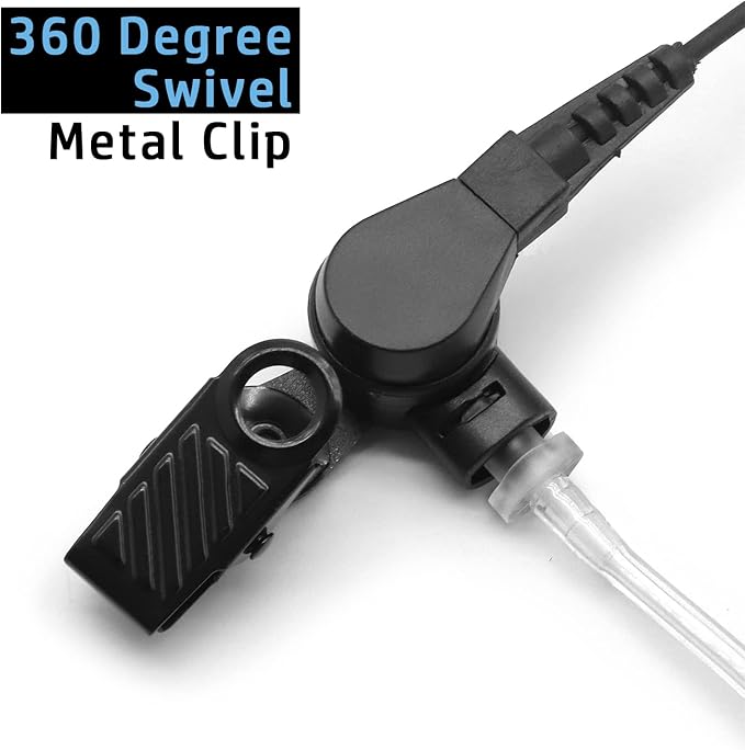 - Made of durable materials: PU cable, metal double pin audio plug, 2 metal swivel collar clips, soft silicone acoustic tube and earbud