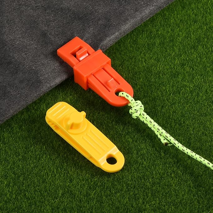 - APPLICATION RANGE: The fixing clip is widely used in outdoor camping, backpacking, hiking, fishing and other occasions, can be used to fix tents, tarps, canopies, canvas, tarpaulins, banners, boat covers, swimming pool covers, fabric covers, etc.