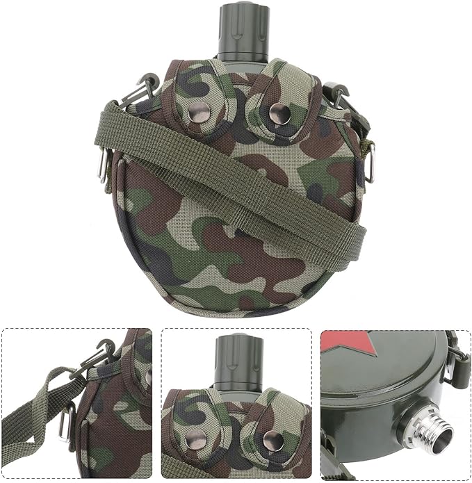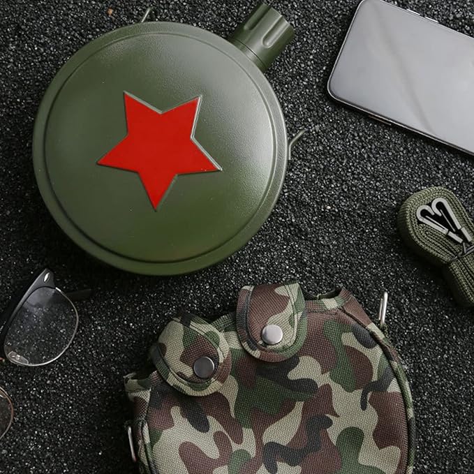 1set Stainless Water Hunting for Canteen Pattern Compact Portable Cap Star Steel Outdoor Hiking Kettle Cover Outdoors with Ml Camouflage Compass Survival Green Outside