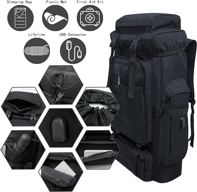 - 【Large Capacity and Multi Compartment】The Ogetok 80L large capacity camping backpack, The main storage bag has an elastic drawstring, which can expand the backpack, and has a built-in compartment, which is enough to hold a lot of large supplies.