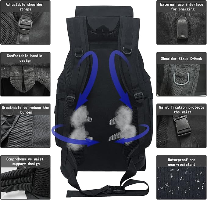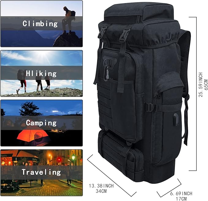 80L 100 Liters Camping Hiking Military Tactical Backpack,Water Resistant Large Travel Daypacks Outdoor MOLLE Rucksack