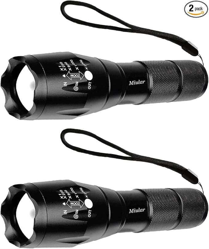 2 Pack LED Tactical Flashlight Military Grade 5 Mode High Lumens Zoomable Flashlights Portable Handheld Flash Lights for Camping Outdoor Emergency