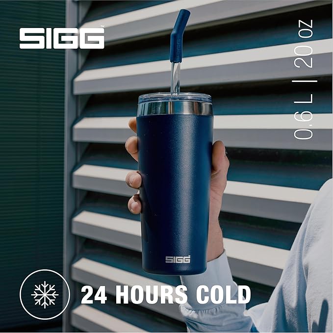 - Scope of delivery: Sigg Helia Tumbler Night Ink 18/8 Stainless Steel 20 oz, insulated mug with straw-cleaning brush, BPA and pollutant-free, handwash recommended, item number: 6015.80
