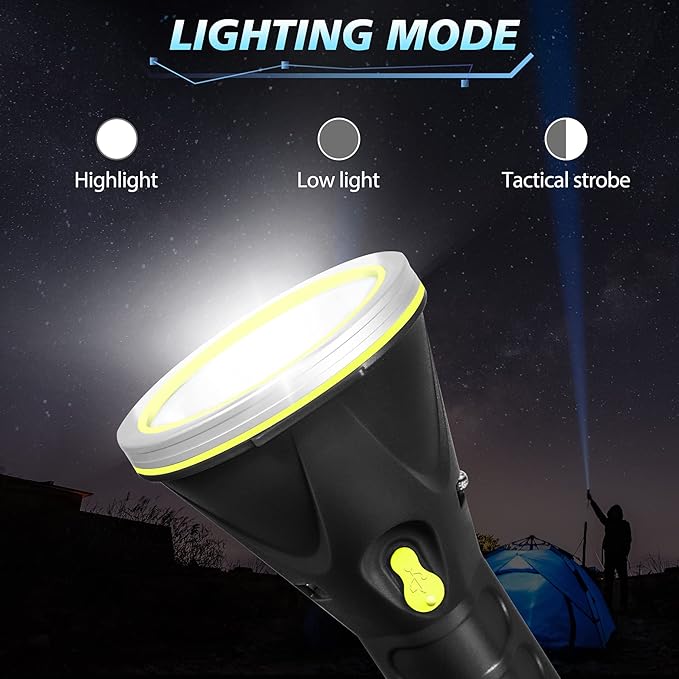 - 【3 MODES & IP67 Waterproof】 No more cycling through endless modes! Only featuring 3 useful light modes (High - Low - Strobe), it effectively reduces the trouble of switching 5 modes. It's ideal for camping, hiking, outdoor, repairs, and other emergencies.IP67 waterproof design for reliable water-resistant. Perfect flashlights for use in the rain, snow, or emergencies.