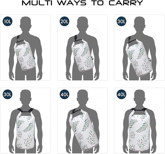 - Multiple Size & Carry Style: 10L & 20L dry bag include one adjustable and removable shoulder strap for cross-body, 30L & 40L dry backpack with large capacity include two straps for backpack-style carrying, meet your demands on different occasions