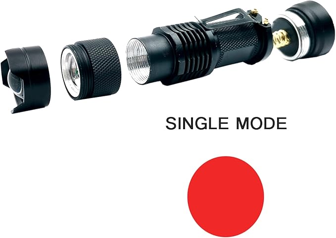 - ONE MODE: This red led flashlight is single mode flashlight with simple on/off switch.
