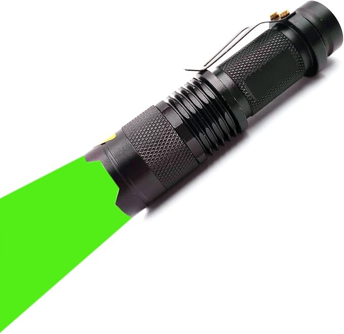 Green Light Flashlight Single Mode Green LED Flashlight with Clip Zoomable Green Flashlight for Hunting Fishing Night Observation