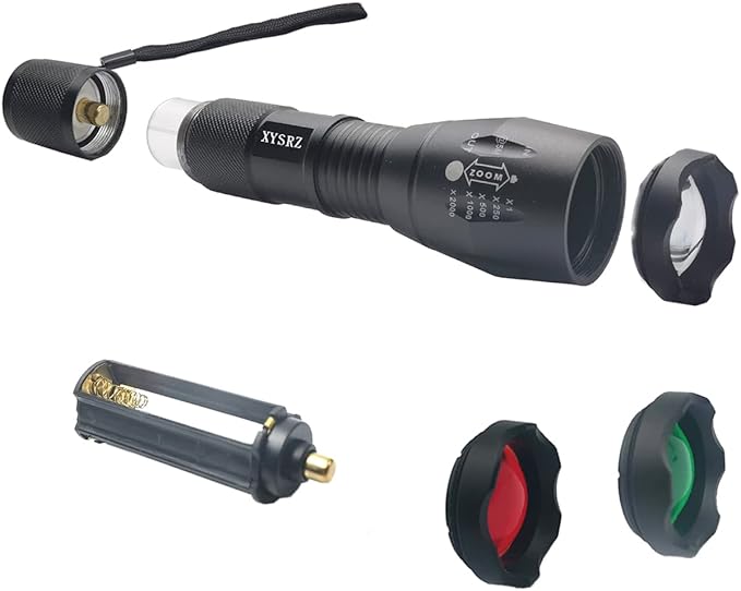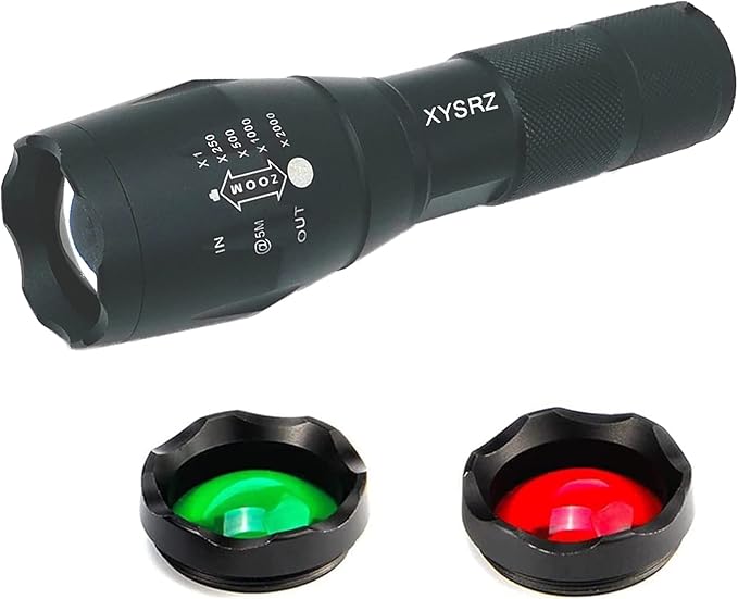 3-Color-Light Flashlight Single Mode Flashlight with Red Green Lens Zoomable LED Flashlight for Hunting Astronomy Camping Night Vision
