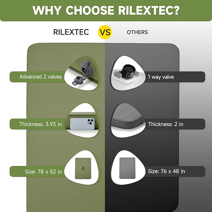 - 【Stable & Silent Sleep】Made from tear-resistant and durable materials, this sleeping mat providing reliability and peace of mind in various camping environments. Due to the sleeping pad's air and foam combination construction, you will experience a peaceful and silent rest or sleep without noisy interruptions during your outdoor escapades!