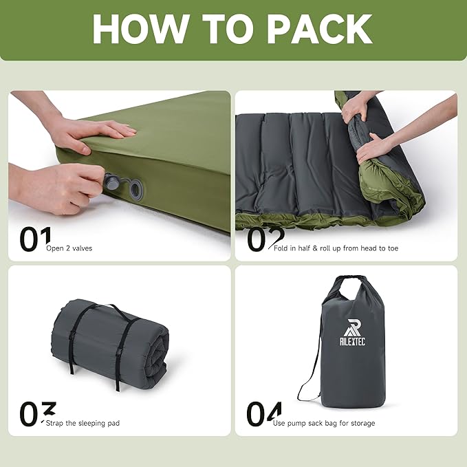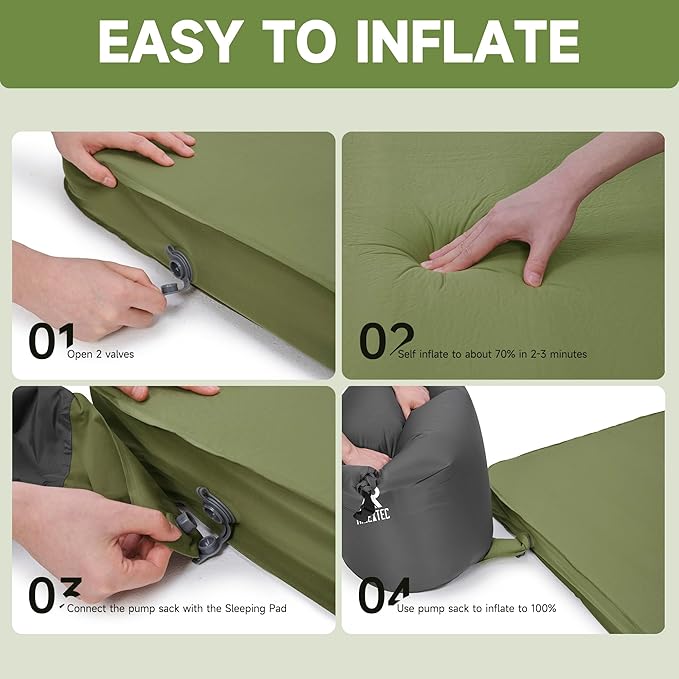 - 【Superior Support & Comfort - Like Home】Features in ultra-soft and high rebound memory foam, this Double Sleeping Pad for Camping provides you good support, keep you away from the hard ground. Perfectly support your body and fit to your body whatever your sleeping position. Also with the pump sack, you can adjust the firmness to suit your needs!