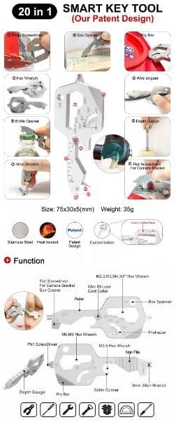 20 In 1 Multi key tool, survival tool, back up tool, key chain belt loop tool.