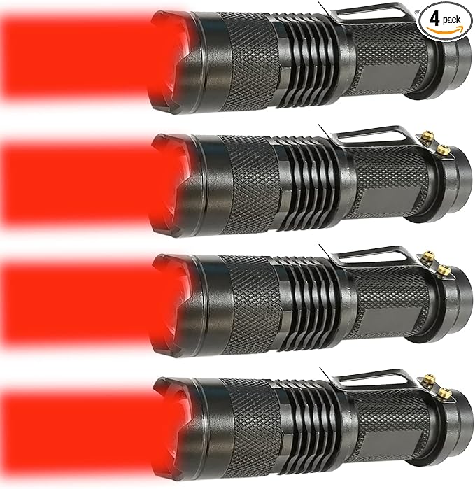 4 Pack Single Mode Red Light Flashlight Red Torch Light with Clip Zoomable Red Flashlight for Hunting Astronomy Aviation Night Observation