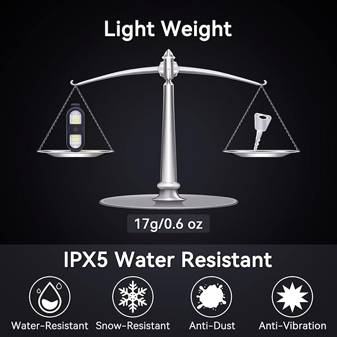 - High Quality:IPX6 Waterproof Design make Clip on Light well protected against being sprayed by water from any angle even in the rain or snow.We offer 1 Year Warranty:We are confident with our product quality. Please get to us if there is anything you need.We are glad to fulfill your satisfaction.