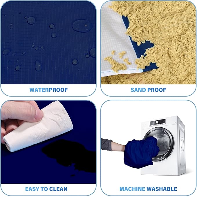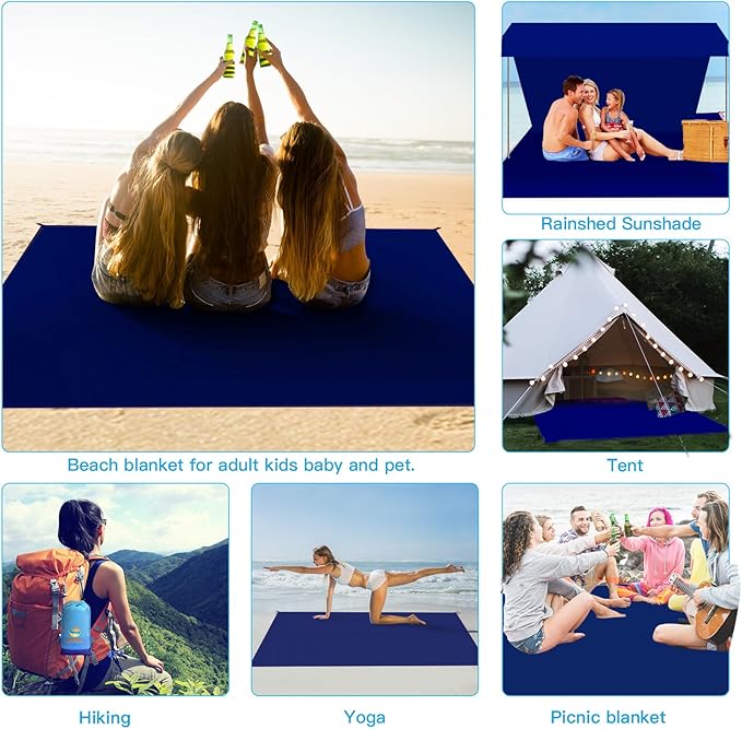- 🏕️Beach Blanket Oversized:Good tear resistance,dry quickly.Also can be used as a rain shed,sunshade,tent,toddler crawl,emergency mat.Feel comfortable to lying down.Won't irritate your skin,better professional fabric sewing.
