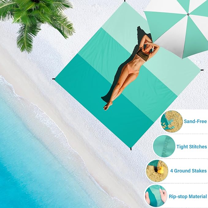 - 🏖️Beach Blanket Waterproof Sandproof:78''×81''size beach blanket,suit for 1-5 adults in total,odorless,made by parachute fabric.Rip-stop 210T polyester,light weight and small after folding.12 oz easy to carry,small and mighty!