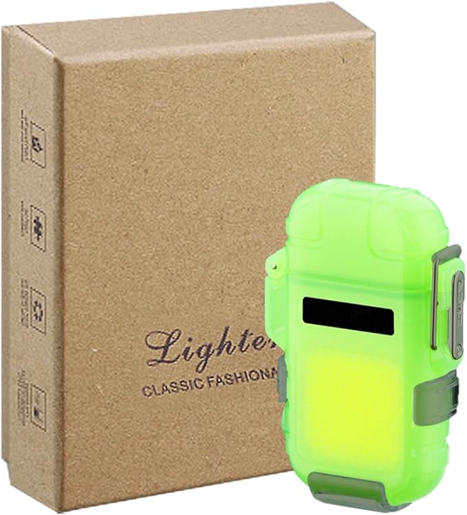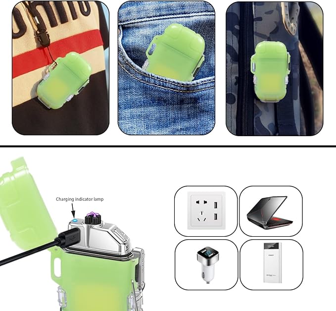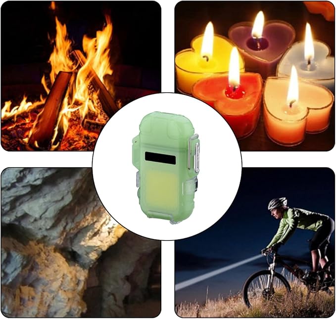 Outdoor Arc Electric Lighter USB Rechargeable Lighter LED Flashlight Double Arc Plasma Lighter Perfect for Camping Hiking Traveling (Noctilucent)