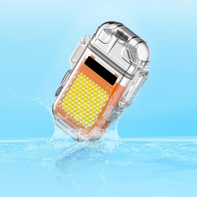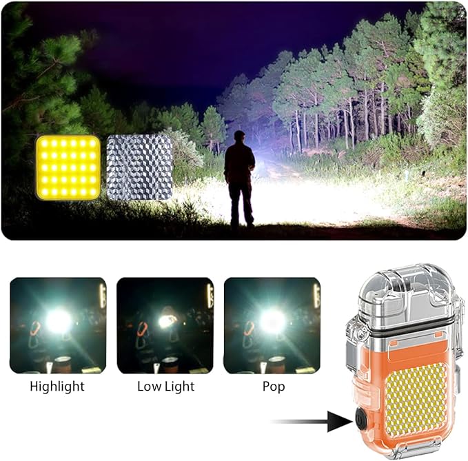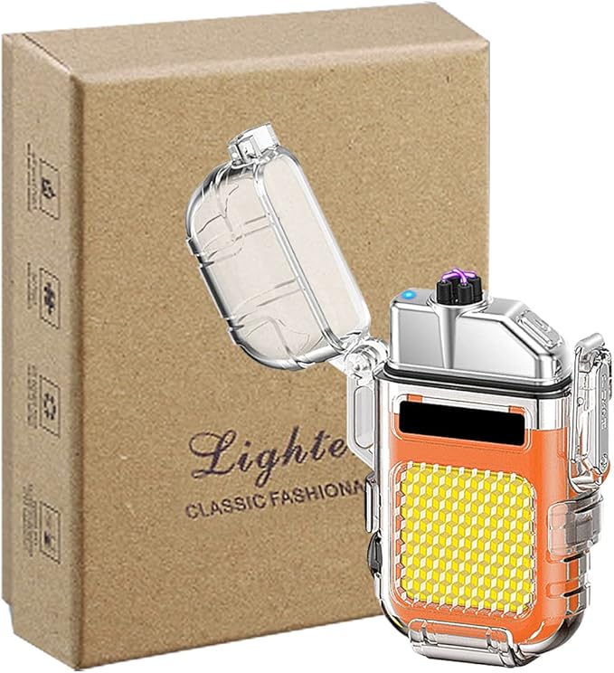 Outdoor Arc Electric Lighter USB Rechargeable Lighter LED Flashlight Double Arc Plasma Lighter Perfect for Camping Hiking Traveling (Orange)