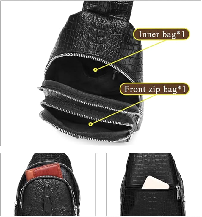 - 【Designed for comfort】 : Unique crocodile embossing pattern sling backpack, It can be used as a Chest Pack, Business Leather Bag, Casual Sports Sling Bag, Single Shoulder Bags, Messenger Bag, Travel bag, Leather Golf Bag, Handbags etc.Adjustable cross-body shoulder strap with release clip.Satchel strap is adjustable and can be left or right shoulder, fit both regular and plus-size person. This stylish sling bag can be used as a chest bag and shoulder bag.