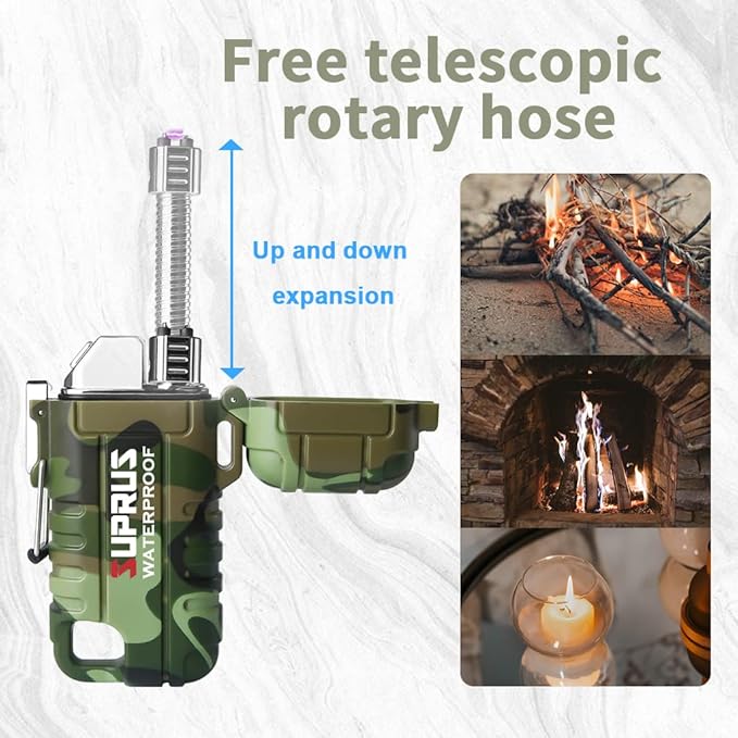 SUPRUS Waterproof Lighter Windproof Lighter Arc Plasma Lighters USB-C Rechargeable with Expandable and Flexible Neck for Outdoor, Camping & Kitchen (Camouflage)