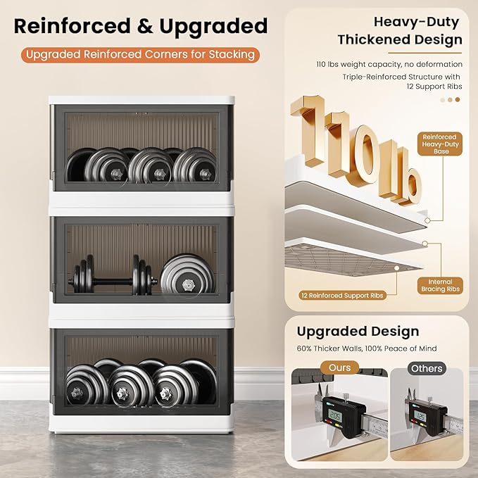 - Quick Assemble & Fold: Our storage containers can be assembled in 1 minute and folds down to 4 inches when not in use, easily tucking under beds/tight spaces—saves 80% of space. Heavy-duty PP plastic (2mm thick walls) supports 110 lbs (50 kg)/pack