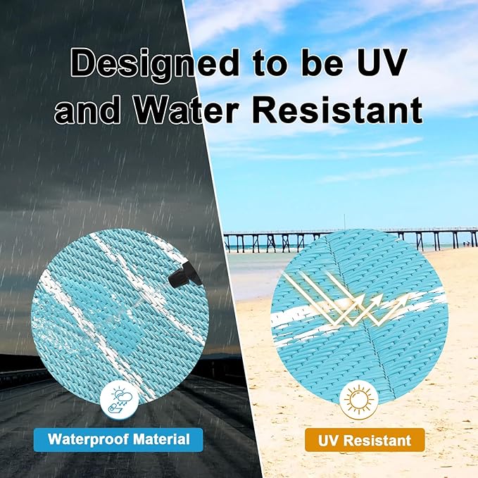 - Versatile Outdoor Carpet: The indoor outdoor plastic rugs have multiple choice in different colors(4'x6',5'x8',6'x9',8'x10',9'x12',9'x18',8'round), is ideal for a variety of indoor outdoor activities,like patio mat, deck rug, garden rug, beach mat, picnic mat, BBQ party mat, rv camping rug,pool rug,outdoor doormat,garage rug,front door mat,allowing you to have plenty of imaginable space for more fun.