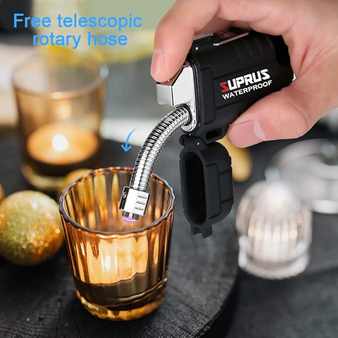 SUPRUS Waterproof Lighter Windproof Lighter Arc Plasma Lighters USB-C Rechargeable with Expandable and Flexible Neck for Outdoor, Camping & Kitchen (Black)