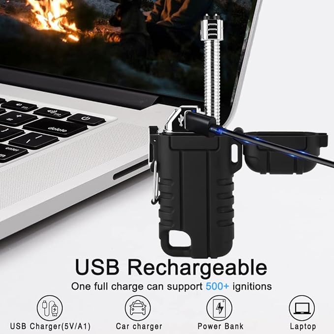 - 【MULTIPURPOSE USE】-Windproof and flameless,usb rechargeable arc lighter. It is a perfect outdoor lighter,camping fire starter tool,an emergency fire starter tool,edc camping survival tactical gear and more.