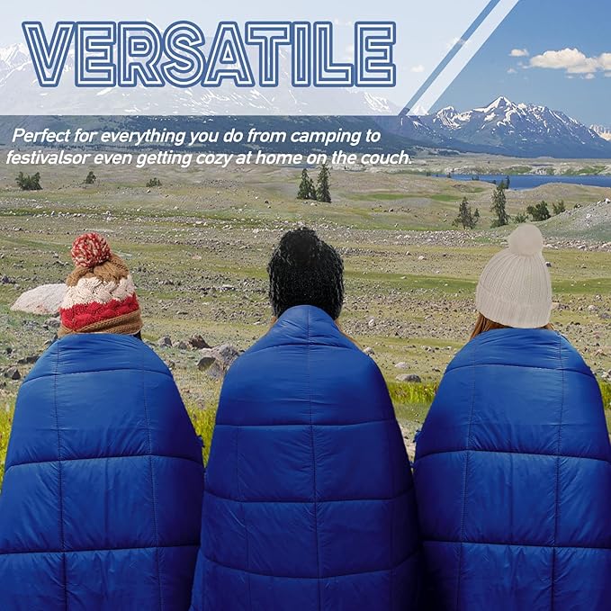 - 5.Shawl & Cover Foot: The one-person blanket is wearable! You can wear this puffy blanket when you are cooking foods, or drinking beer all while staying warm. When drinking coffee with your family in the garden, you can cover this puffy blanket to keep warm in the morning.
