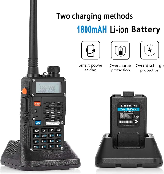 - Long battery life&fast charging: The ham radio handheld comes with high-capacity rechargeable Li-ion battery for continuous use. Low battery warning reminds you of charging or replacing the battery. It takes about 3 hours to fully charge