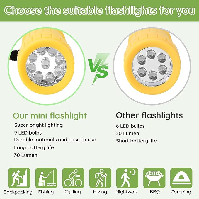 - ✿Super Bright Lighting: The mini flashlight is equipped with a super bright 9-LED bulb, which can provide 30 lumens of light output, making it easy to walk in the dark or read books at night. Wide field of view in almost any situation.