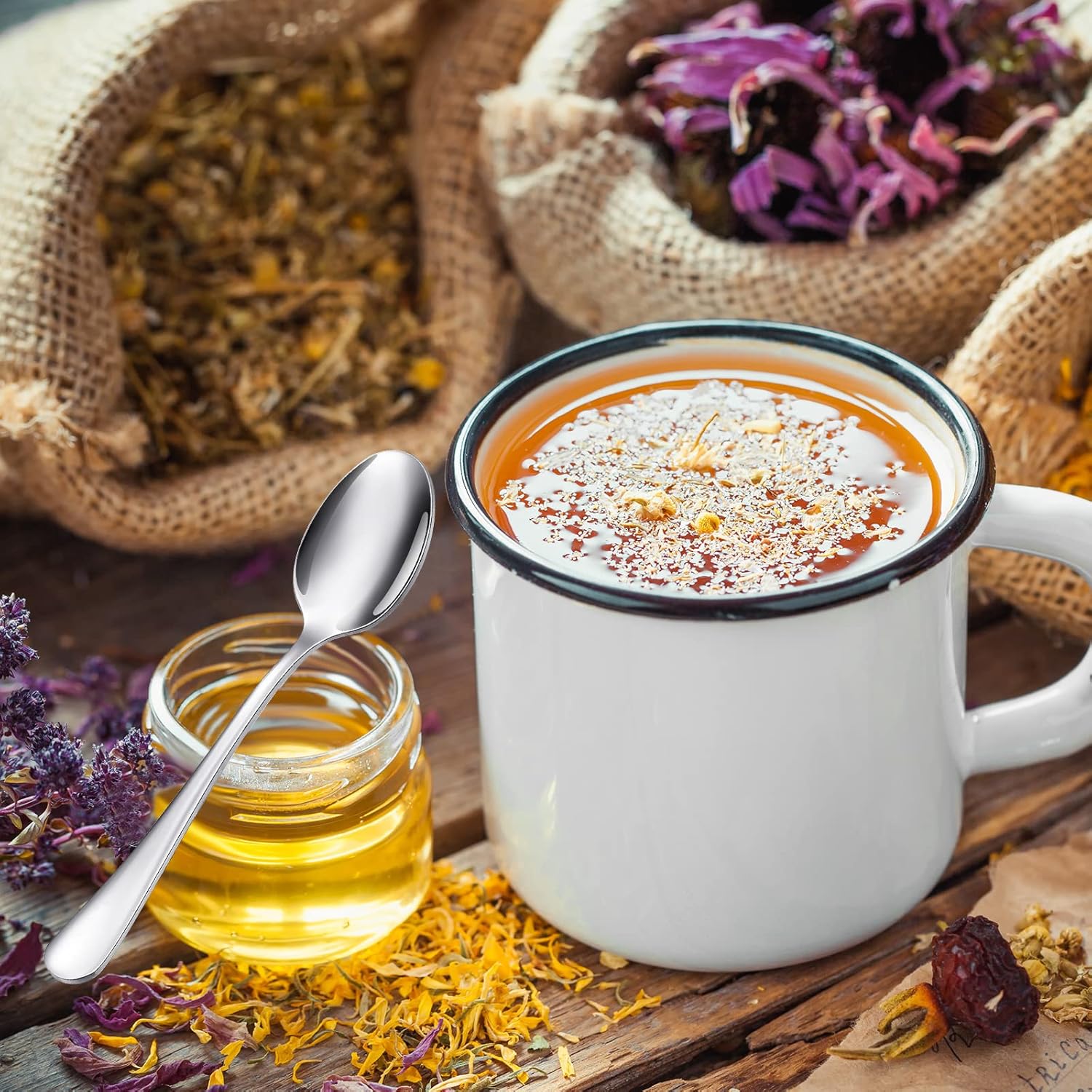 - Suitable Size: our dinner spoons are about 4.33 inch long and 1.18 inch wide, great for tasting coffee, dessert and cake lovers, and for stirring things like tea chocolate milk and so on, can be easily stored in drawers, convenient for you to use