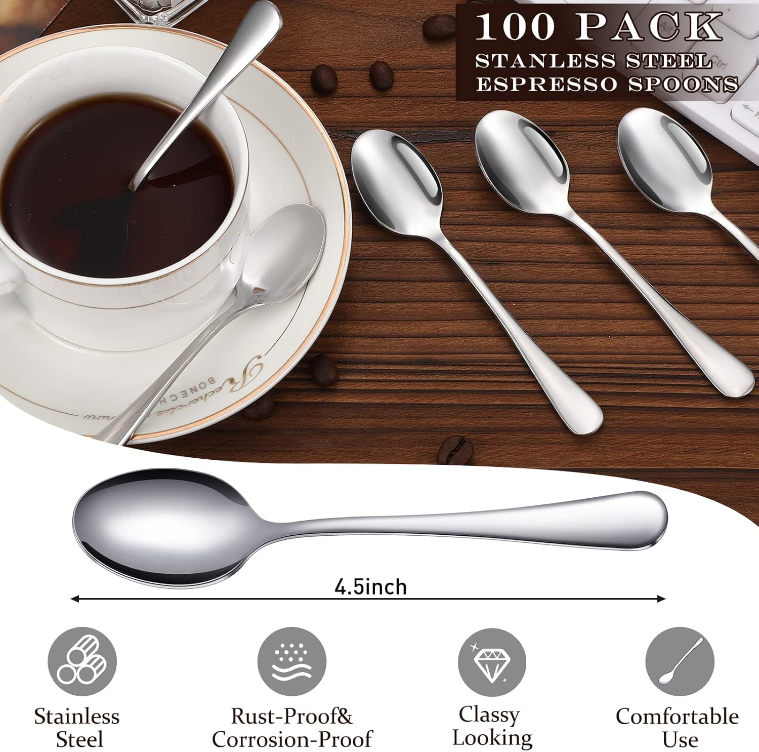 100 Pcs Demitasse Espresso Spoons Stainless Steel Bulk, 4.33'' Small Mini Coffee Tasting Dessert Spoons for Kitchen Dessert, Tea, Appetizer, 1.18'' Wide(Classic Style,Silver)
