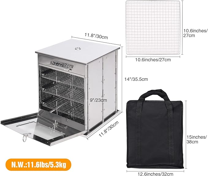- Premium Material: This camping oven is made of high-quality 304 stainless steel, which is sturdy, corrosion resistant and has a long service life. You can put food in it and bake it with confidence. Its net weight is 11.6lbs/5.3kg, which is enough to provide enough stability when you use it.