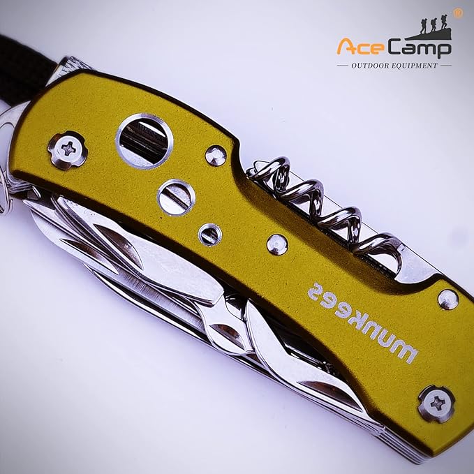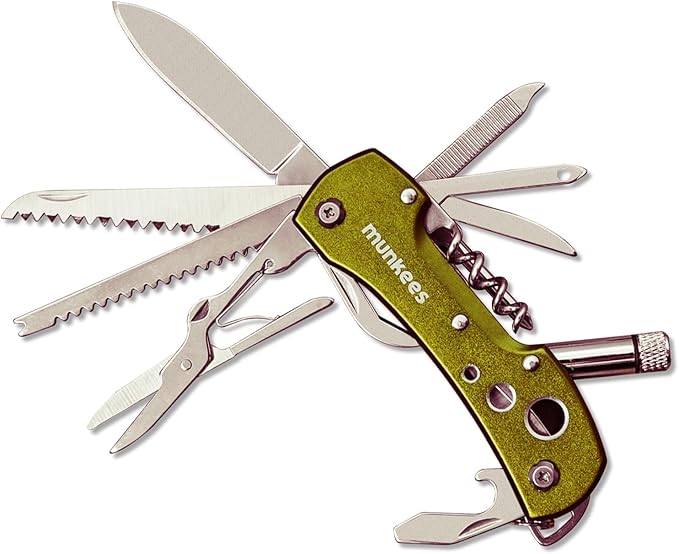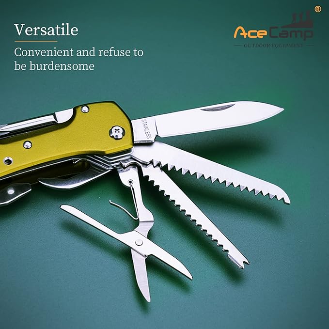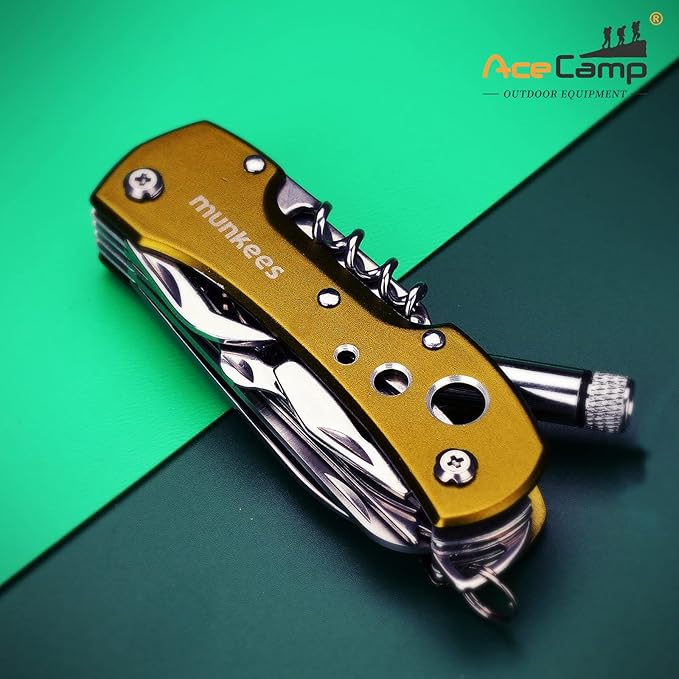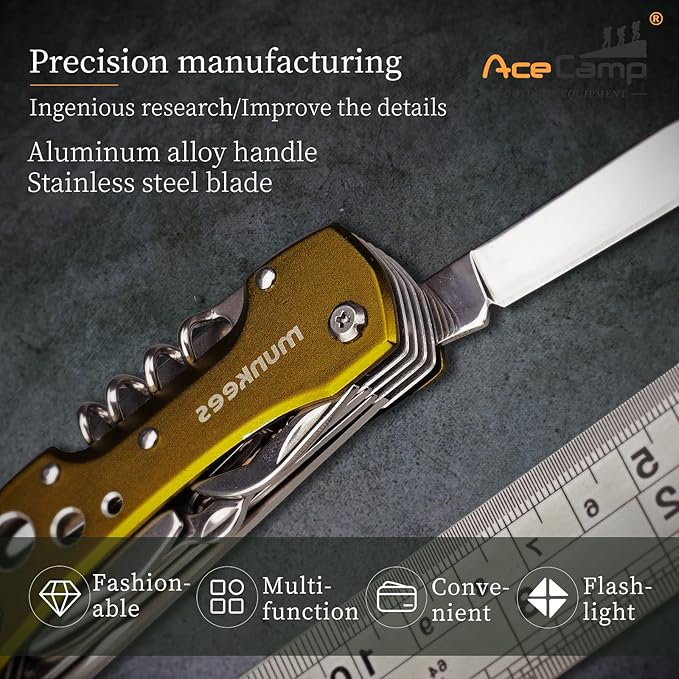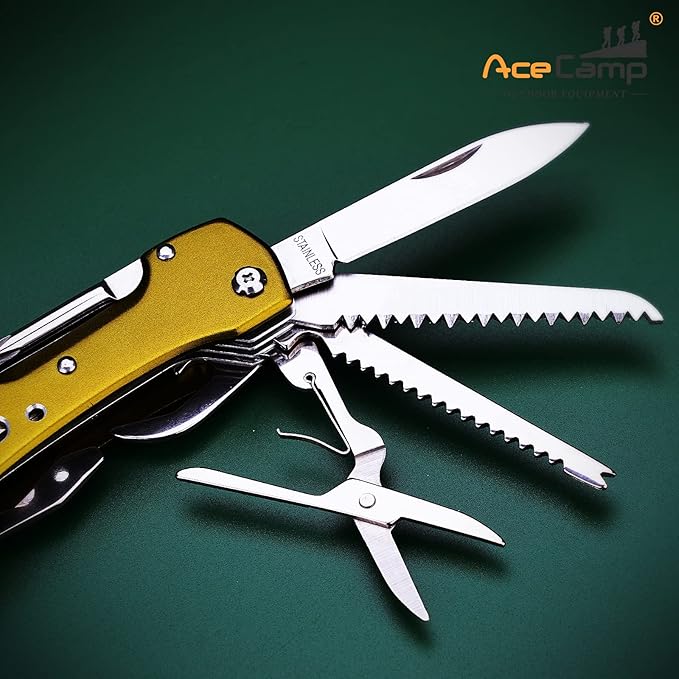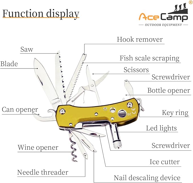 14-in-1 multifunctional pocket tools with led, knives, scissors, corkscrews, screwdrivers, for outdoor, camping, fishing
