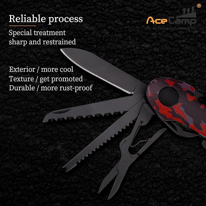 - Blade, saw, bottle opener, screwdriver, scissors and other common functions are integrated.